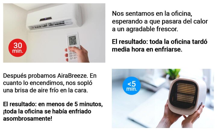 Comparado con el aire acondicionado tradicional, es un 300% más eficiente, más pequeño, portátil y enfría cualquier habitación mucho más rápido: ¡en menos de 5 minutos!